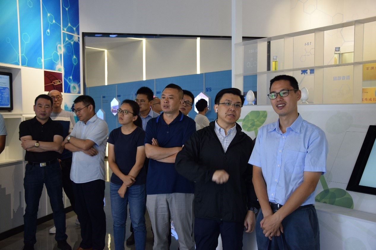 考察團一行先是參觀了企業(yè)發(fā)展(產(chǎn)品)展示廳和黨建展廳。樊彬董事長向各位領(lǐng)導(dǎo)就公司發(fā)展歷程、企業(yè)文化、產(chǎn)品工藝流程、設(shè)備裝置、市場前景及黨建工作情況等作了簡要介紹。并對上虞生產(chǎn)基地目前的主要產(chǎn)品、未來發(fā)展規(guī)劃、競爭優(yōu)勢、人才戰(zhàn)略方面及化工制造業(yè)工藝升級工作做了重點匯報。雙方就目前社會、經(jīng)濟形勢下精細化工、新材料、光固化等領(lǐng)域的發(fā)展情況、所遇到的問題及解決方法作了深入的交流。