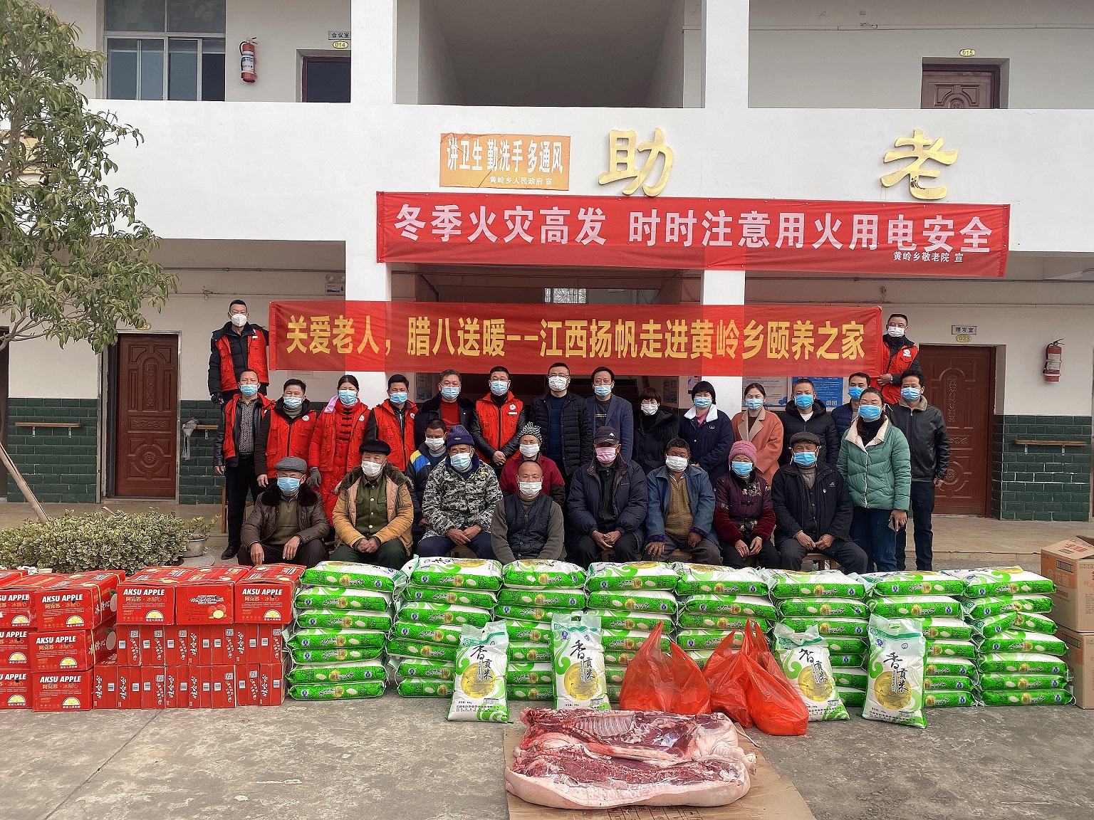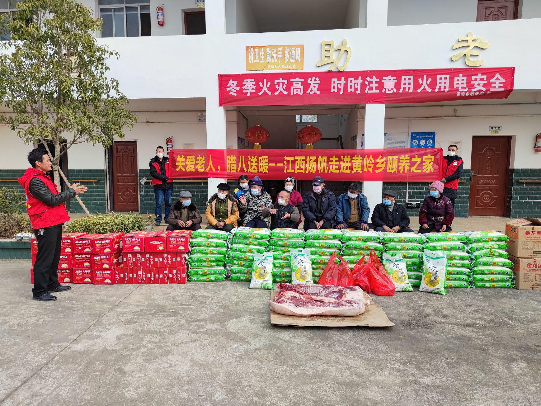 關愛老人,臘八送暖。臘八節當天上午,時任彭澤縣新聯會副會長的浙江揚帆新材料股份公司副總裁陶明,帶領新聯會部分會員走進黃嶺鄉頤養之家走訪慰問,為老人們送去豬肉、大米、油、八寶粥、蘋果等生活物資,讓困難老人真切感受到節日的溫暖與關懷。