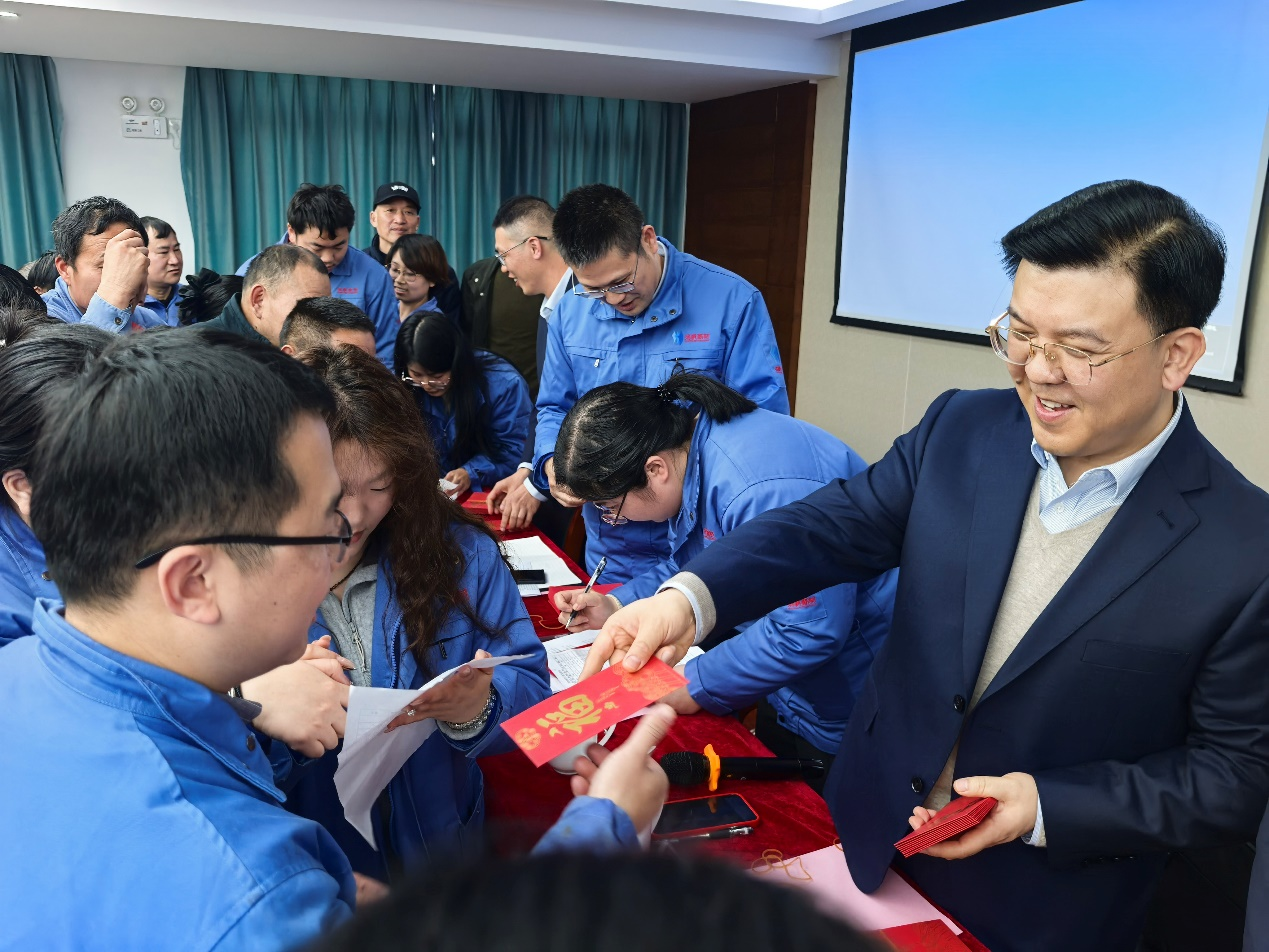 大會最后,舉行了溫馨而喜慶的“發紅包”活動。公司領導向全體員工派發新年紅包,送上新春的祝福與關懷,將現場氣氛推向最高潮。紅色的祝福傳遞著公司對員工的深切關愛,也寓意著新的一年紅紅火火、蒸蒸日上。