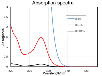 (in Acetonitrile _____ 0. 1% _____ 0.01% _____0.001%)